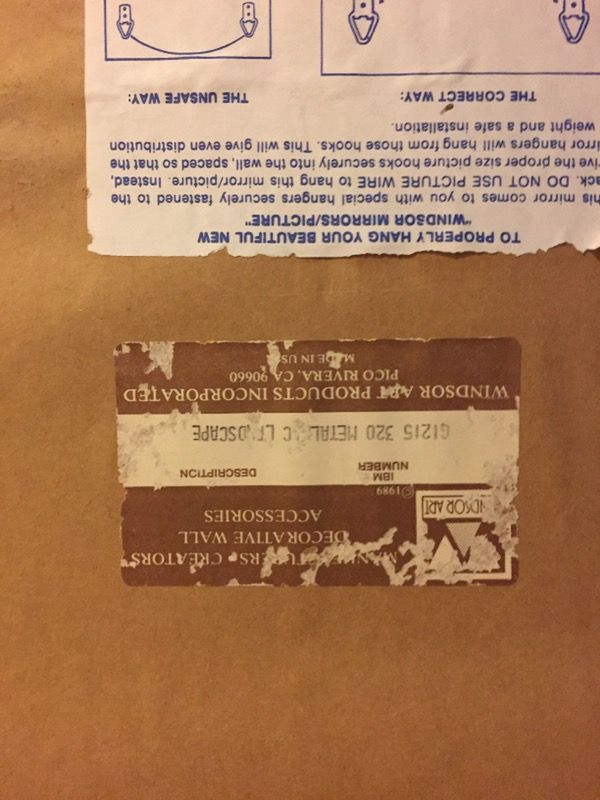 Windsor Art Products Mirror. PICO RIVERA CA 90660. I have a Windsor Art Product IBM Number G 4185 366 MARSH BIRD 24X30.